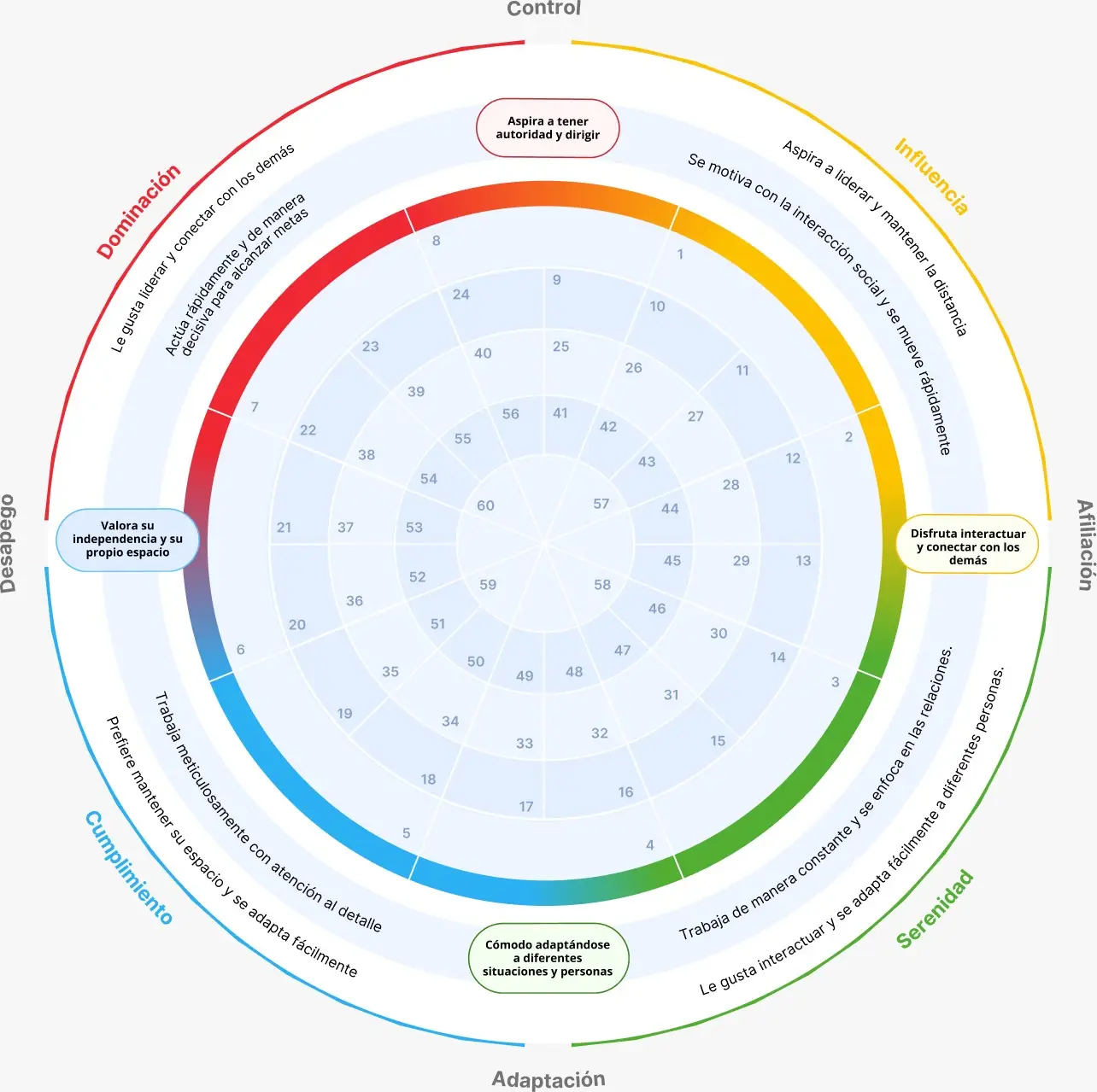 Una herramienta integral que, desde el análisis detallado de sus estilos natural y adaptado hasta la identificación de sus fortalezas, limitaciones y preferencias de trabajo, le ofrece una visión profunda de su perfil DISC.